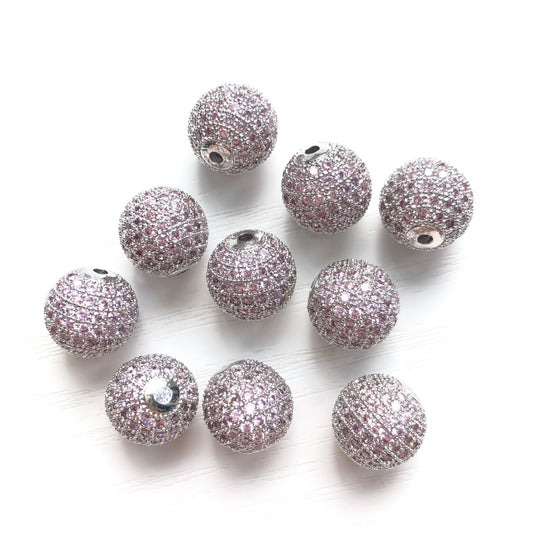 5/10/20pcs/lot 12mm Purple CZ Paved Ball Spacers