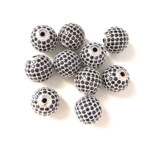 10-20pcs/lot 12mm Black CZ Paved Ball Spacers