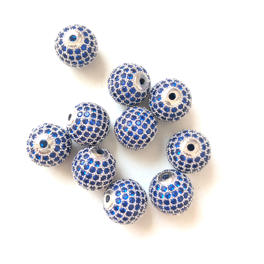 5/10/20pcs/lot 12mm Blue CZ Paved Ball Spacers