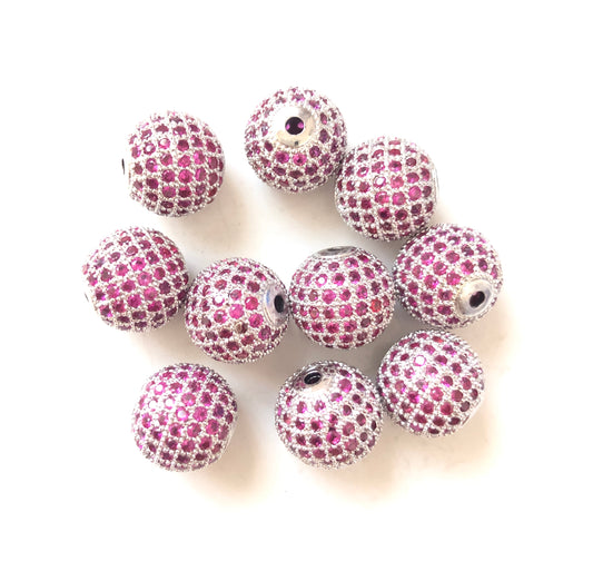 5/10/20pcs/lot 12mm Fuchsia Red CZ Paved Ball Spacers