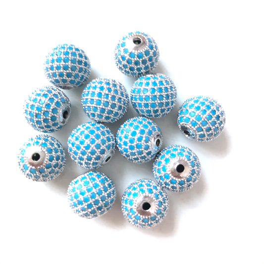 5/10/20pcs/lot 12mm Lake Blue CZ Paved Ball Beads Spacers