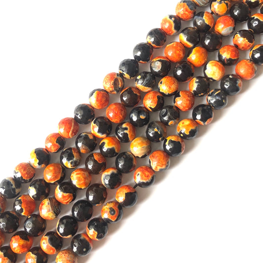 2 Strands/lot 10mm Orange Black Faceted Fire Agate Stone Beads