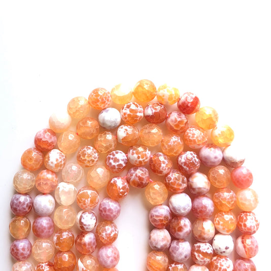 2 Strands/lot 10mm White Orange Faceted Fire Agate Stone Beads