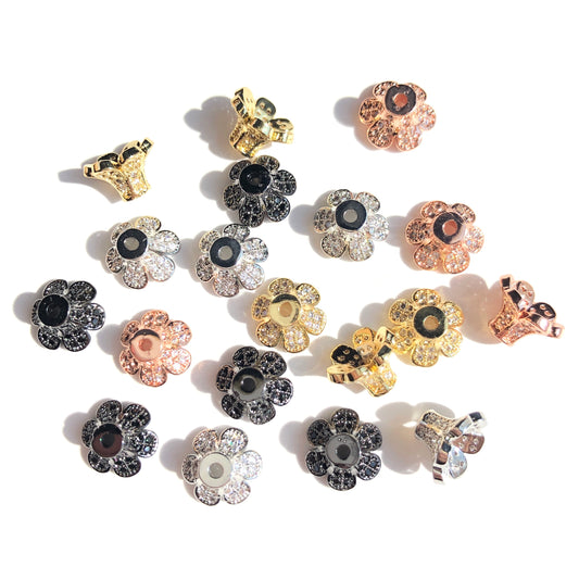 10-20-50pcs/lot CZ Paved Hollow Flower Beads Caps Spacers