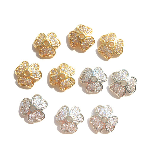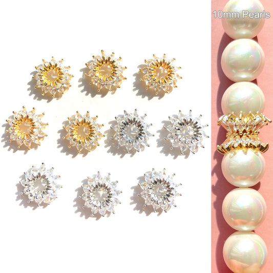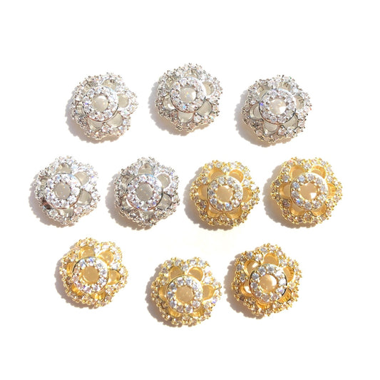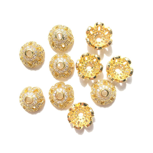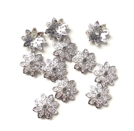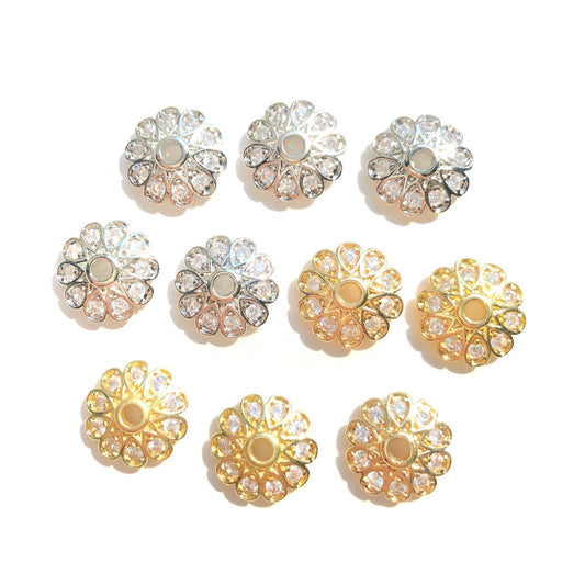10-20pcs/lot 12mm CZ Paved Beads Caps Flower Spacers