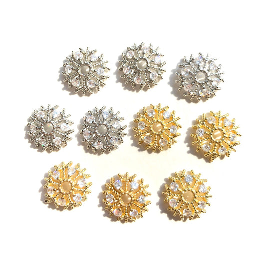 20-50pcs/lot 11.5mm CZ Paved Hollow Snowflake Beads Caps Spacers