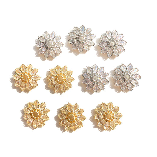 10-20-50pcs/lot CZ Paved Big Size Flower Beads Caps Spacers