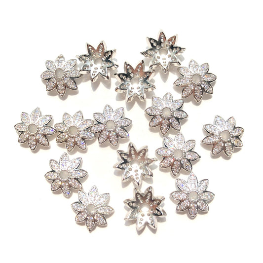 20pcs/lot 10.9mm CZ Paved Beads Caps Flower Spacers