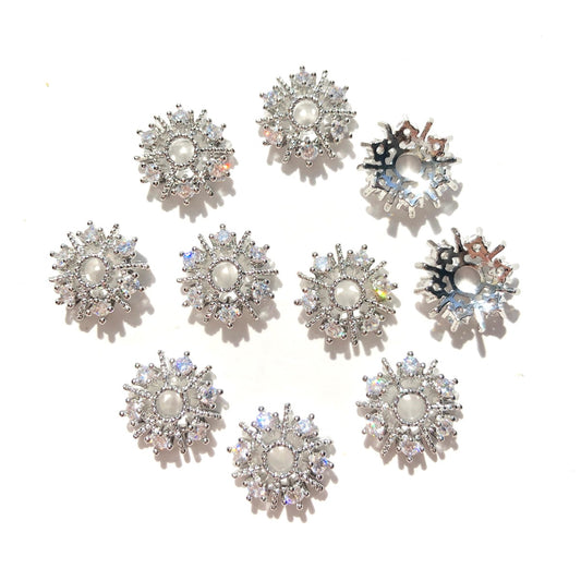 20-50pcs/lot 13.7mm CZ Paved Hollow Snowflake Beads Caps Spacers