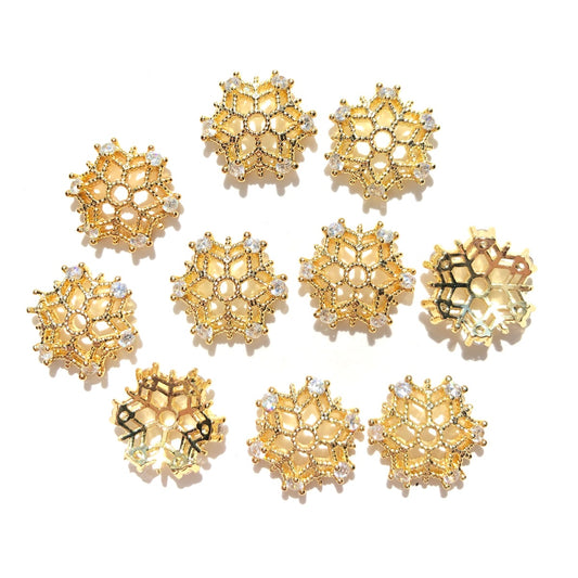 10-20-50pcs/lot CZ Paved Hollow Snowflake Beads Caps Spacers