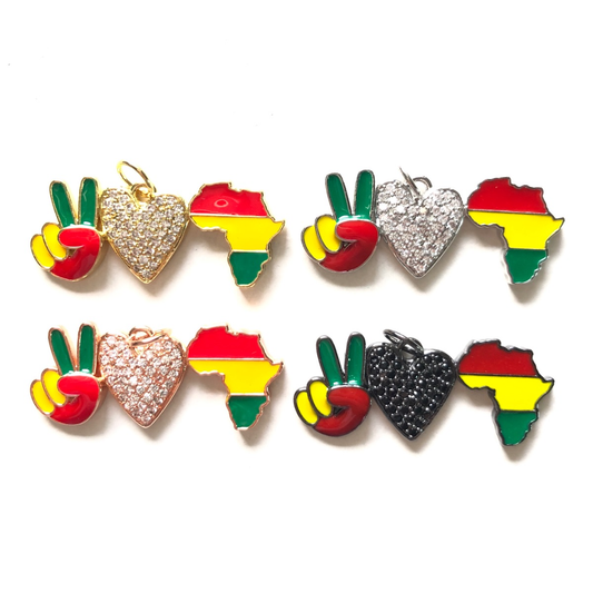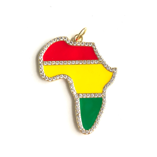 10pcs/lot Red Yellow Green Enamel Africa Map CZ Pave Charms for Black History Month Juneteenth Awareness