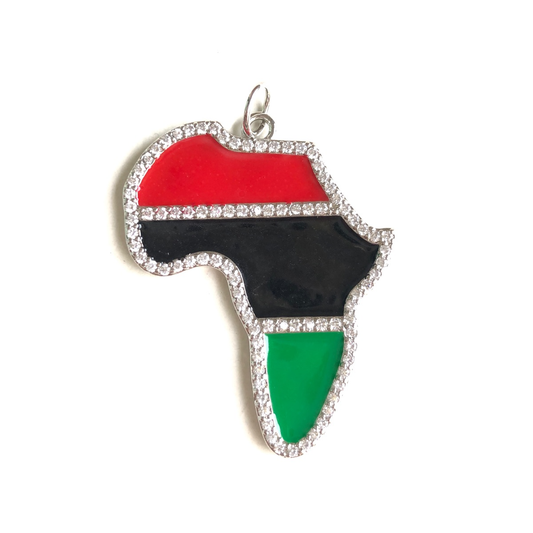 10pcs/lot Red Black Green Enamel Africa Map CZ Pave Charms for Black History Month Juneteenth Awareness