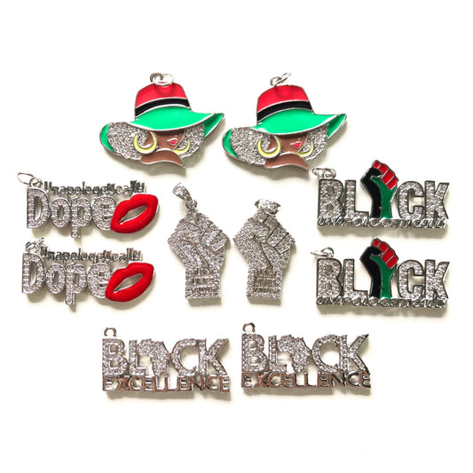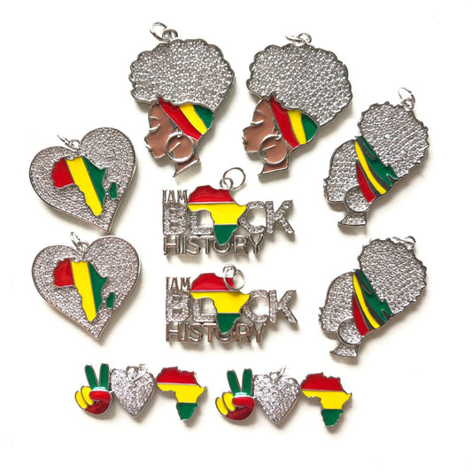 10pcs/lot CZ Pave Charms Bundle for Black History Month Juneteenth Awareness