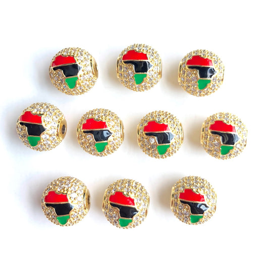 10pcs/lot 12mm CZ Paved Red Black Green Enamel Africa Map Ball Spacers Beads for Juneteenth