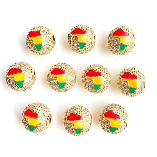 10pcs/lot 12mm CZ Paved Red Yellow Green Enamel Africa Map Ball Spacers Beads for Black History