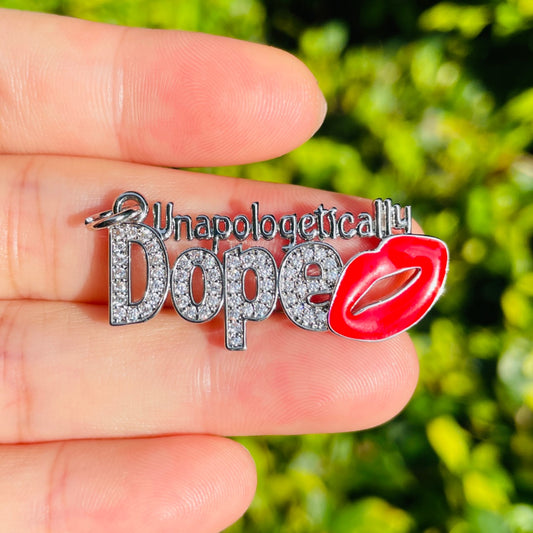 10pcs/lot 36*17mm Enamel Red Lip CZ Pave Unapologetically Dope Word Charms