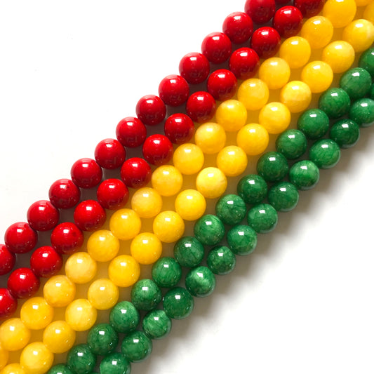 2 Strands/lot 8/ 10/12mm Red Yellow Green Black Jade Round Stone Beads for Black History Month Juneteenth Awareness