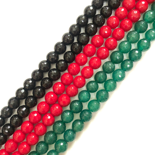2 Strands/lot 10mm Yellow Green Red Black Jade Faceted Stone Beads for Black History Month Juneteenth Awareness