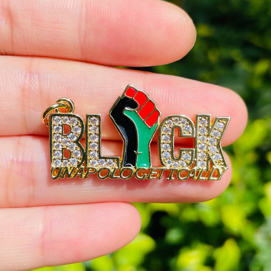 10pcs/lot 36*19mm Enamel Black Lives Matter Fist CZ Pave Black Unapologetically Word Charms for Juneteenth Black Month Awareness