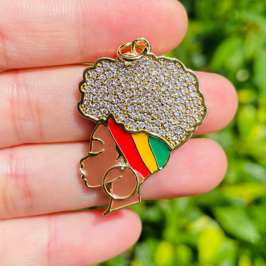 10pcs/lot 36*26mm CZ Paved Red Yellow Green Headband Afro Girl Charms for Juneteenth Black History Awareness