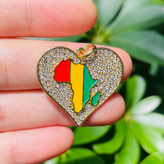 10pcs/lot 27.6*26mm Enamel Africa Map CZ Pave Heart Charms for Black History Month Juneteenth Awareness