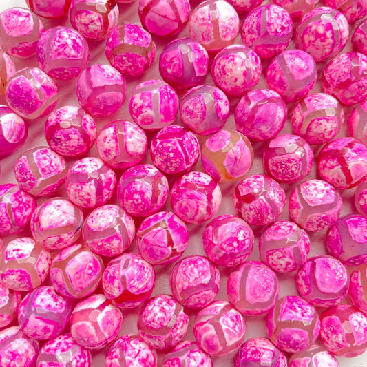 2 Strands/lot 8mm Hot Pink Fuchsia Cracked Fire Agate Faceted Stone Beads