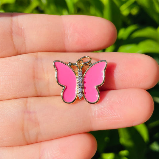 5pcs/lot Black Pink White Enamel CZ Paved Butterfly Charms