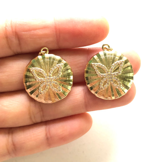 5pcs/lot 23*20.5mm Gold Round Plate Butterfly Charms