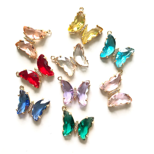 10pcs/lot 22.5*16mm Colorful Crystal Glass Butterfly Charms