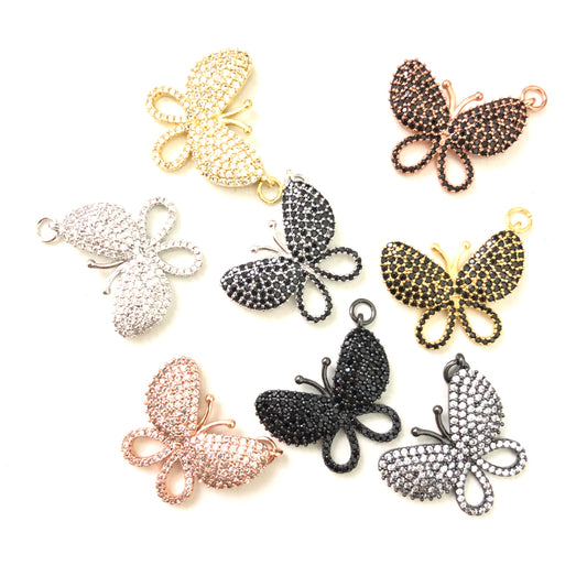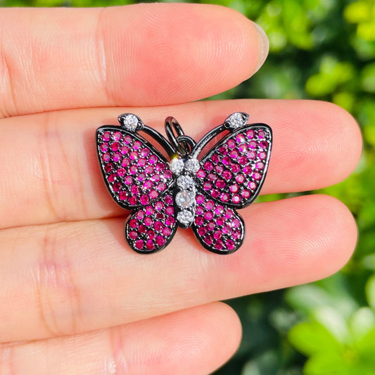 10pcs/lot 24*20mm Multicolor CZ Paved Butterfly Charms