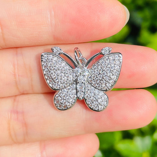 5pcs/lot 21*15mm Colorful CZ Paved Butterfly Charms