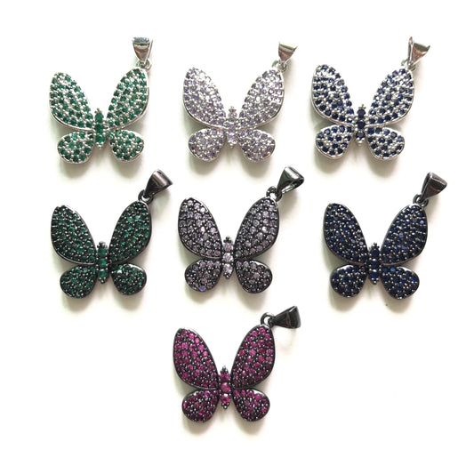 5pcs/lot 27*23mm Multicolor CZ Paved Butterfly Charms