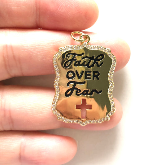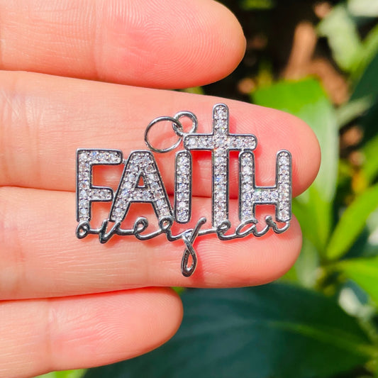 10pcs/lot CZ Paved Faith Over Fear Word Charms