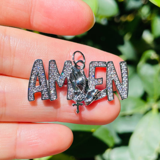 10pcs/lot CZ Pave Praying Hands Amen Word Charms