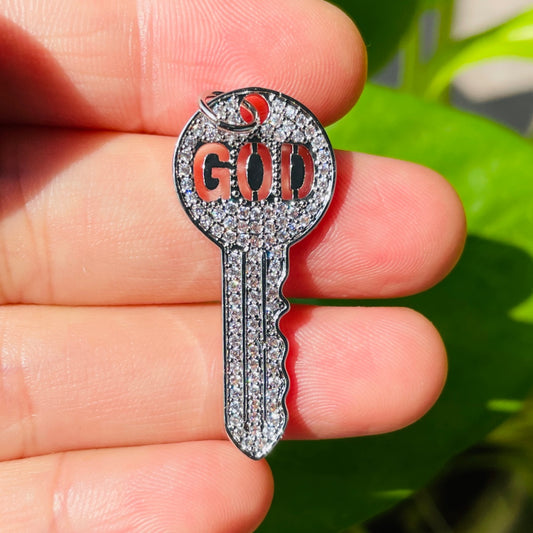 10pcs/lot CZ Paved God is The Key Charms