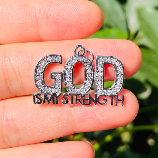 10pcs/lot CZ Paved God Is My Strength Word Charms
