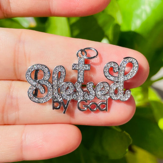 10pcs/lot 38*22mm CZ Paved Blessed By God World Charms