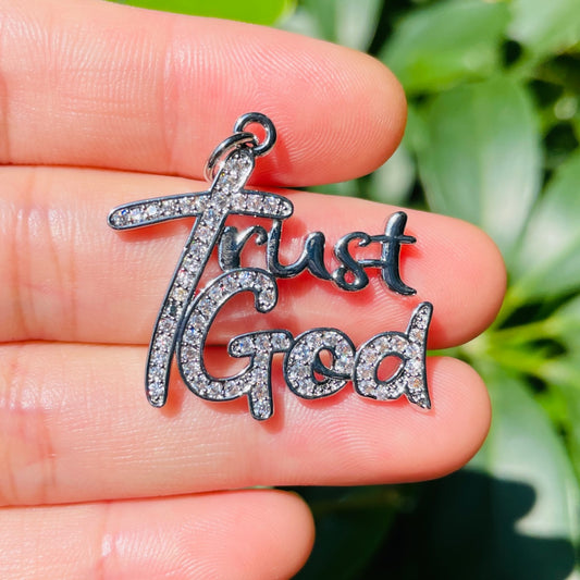 10pcs/lot 32*28mm CZ Pave Trust God Word Charms