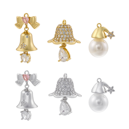 10pcs/lot CZ Paved Christmas Bell Santa Hat Charms