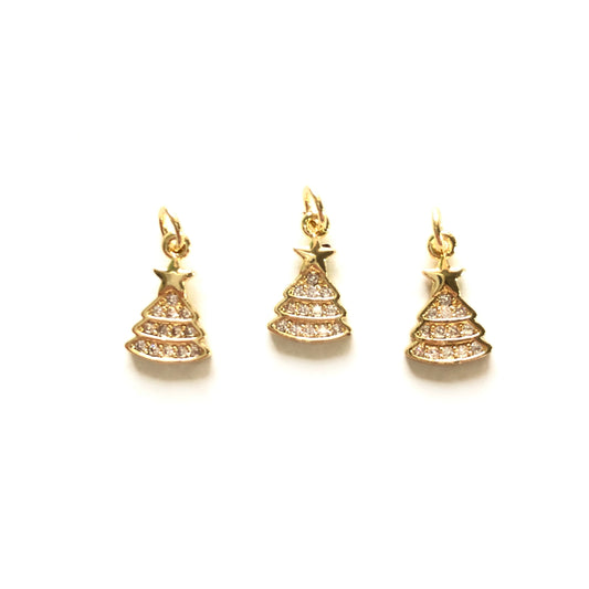 5-10pcs/lot Small Size CZ Paved Christmas Tree Charm Pendants