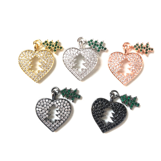 10pcs/lot 23*20mm CZ Paved Christmas Tree Heart Charms