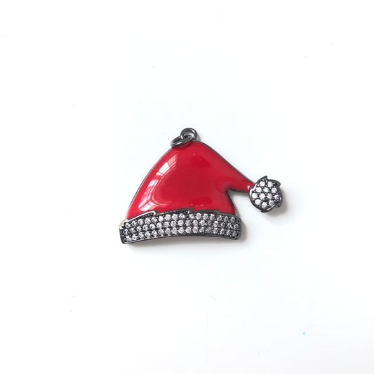 10pcs/lot 34*22mm CZ Paved Santa Hat Charm for Christmas