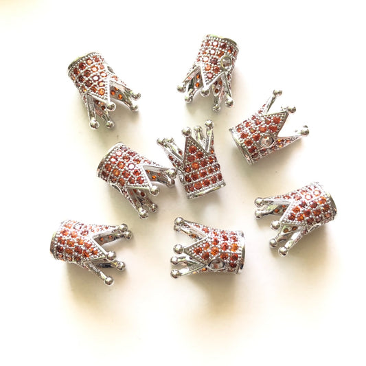 10pcs/lot Reddish Orange CZ Paved Crown Spacers