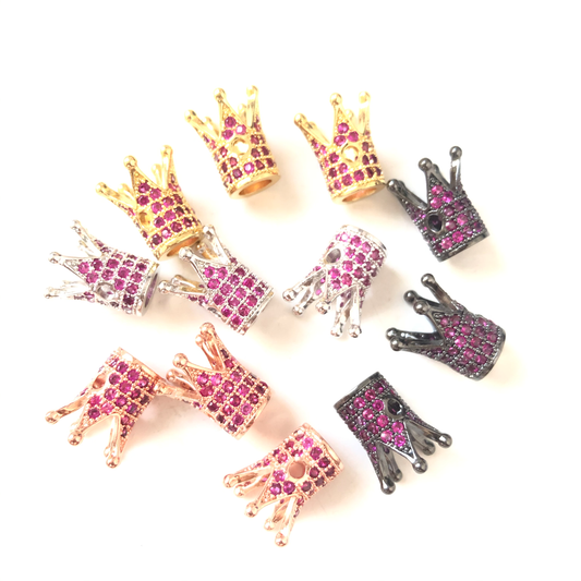 10pcs/lot Fuchsia CZ Paved Crown Spacers