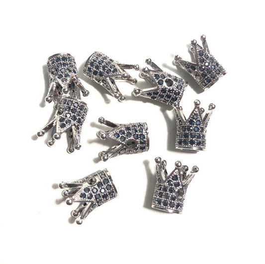 20pcs/lot 13*8mm Black CZ Paved Crown Spacers