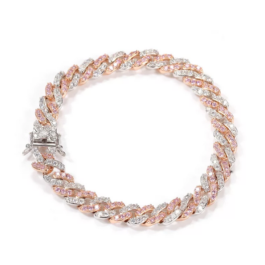 2pcs/lot 6-20 inch Pink CZ Paved Cuban Bracelet/Anklet/Necklace