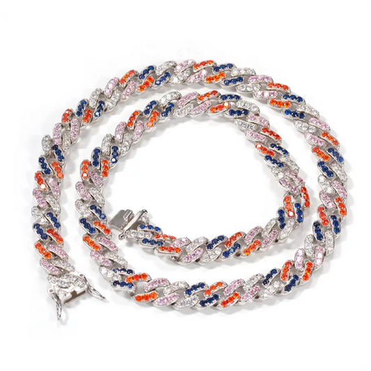 2pcs/lot 7-20inch Multicolor CZ Paved Silver Cuban Bracelet/Necklace