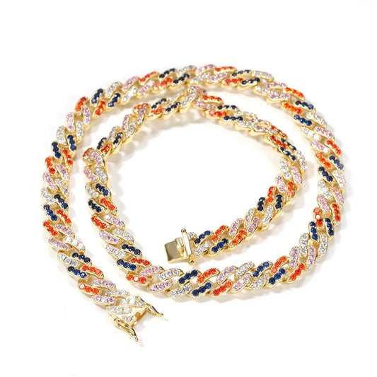 2pcs/lot 7-20inch Multicolor CZ Paved Gold Cuban Bracelet/Necklace