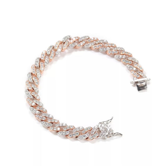 2pcs/lot 7inch Gold Silver Rose Gold CZ Pave Cuban Chain Bracelet
