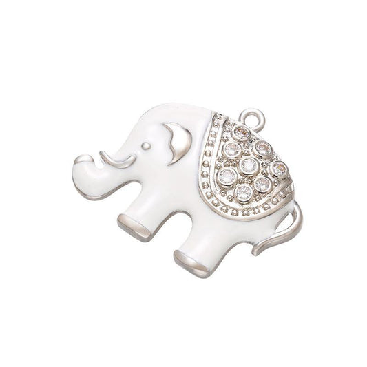 10pcs/lot 32*25mm CZ Paved White Elephant Charms